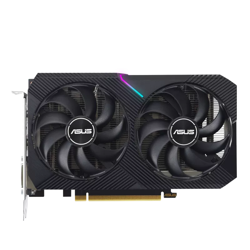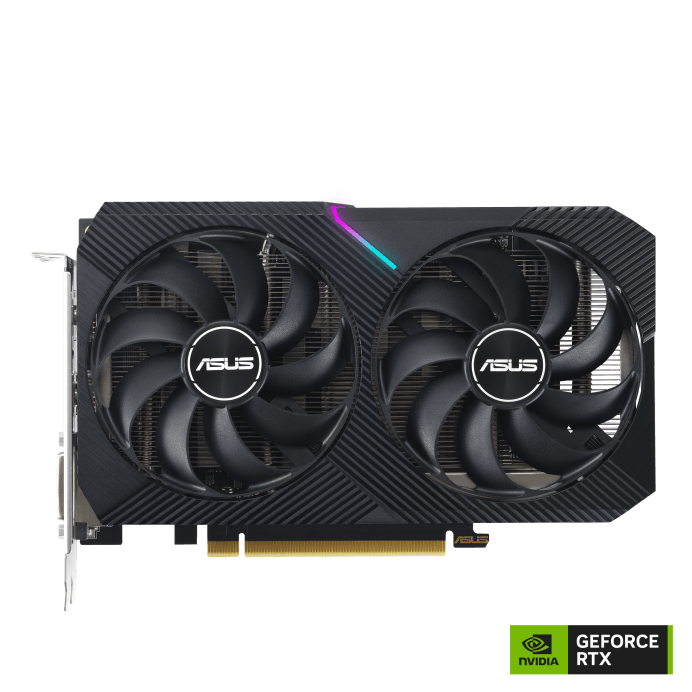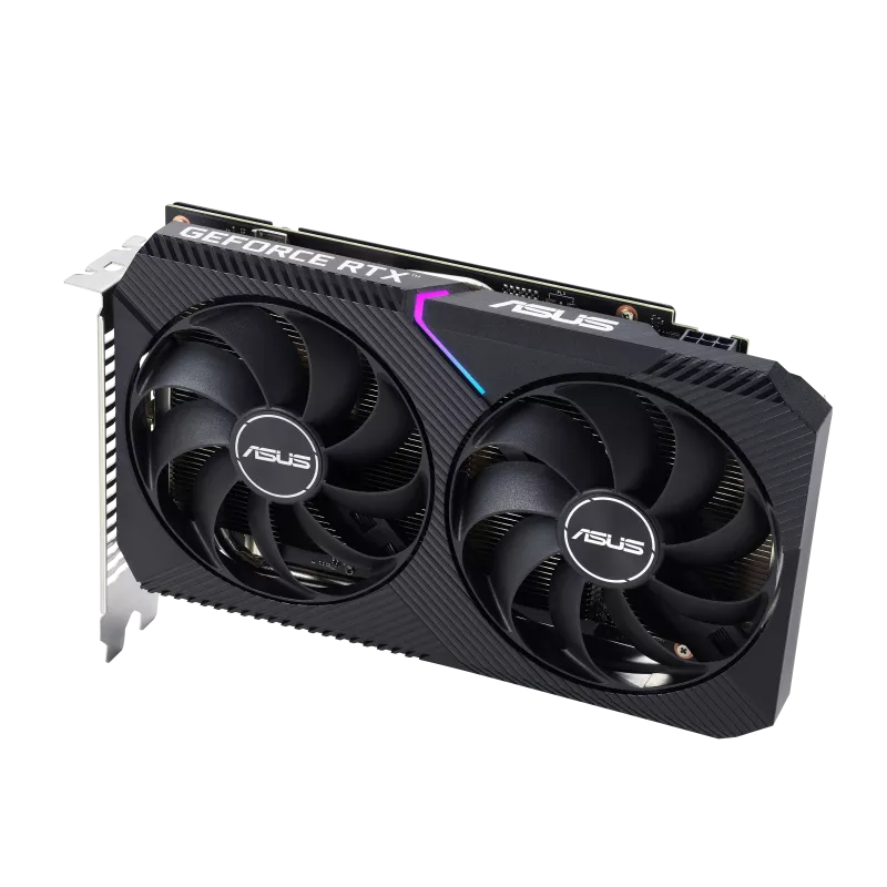 ASUS Dual GeForce RTX™ 3050 V2 OC Edition 8GB GDDR6 with two powerful Axial-tech fans and a 2-slot design for broad compatibility.